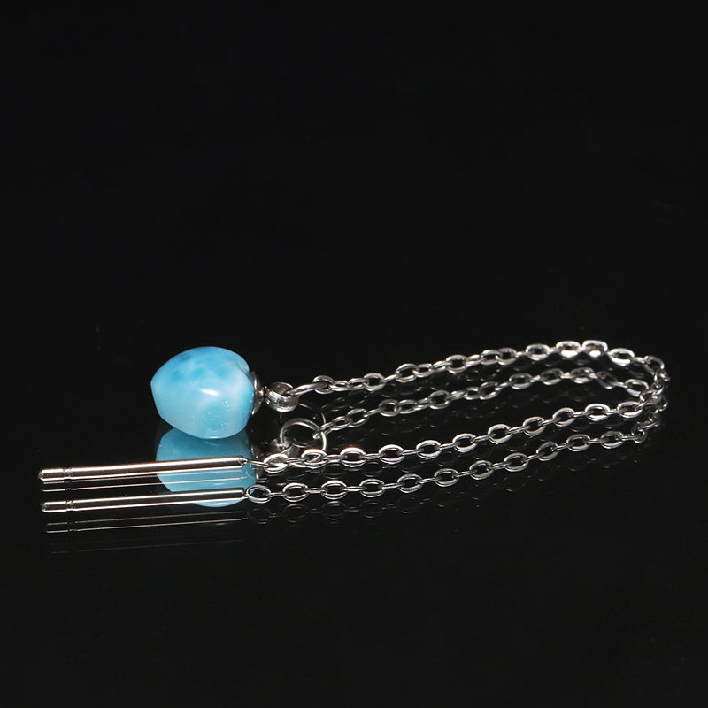片耳ピアス ラリマー<ドミニカ産> ハート型 アメリカンチェーン シルバー ステンレス製 [co-g1777]