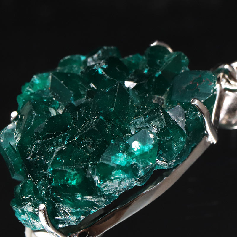 ダイオプテーズは、銅を主成分とするケイ酸塩鉱物で、エメラルドグリーンから深い翠色に近い鮮烈な緑色が最大の特徴です。