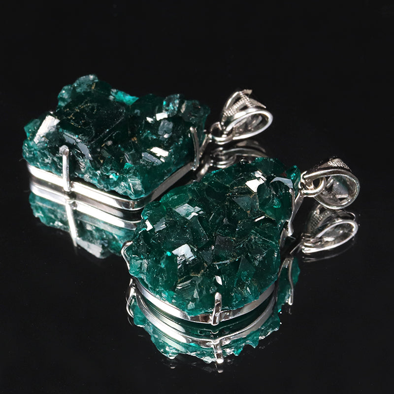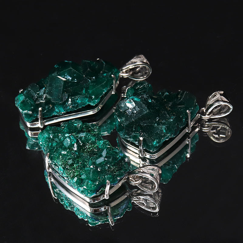 【現品限り】ペンダントトップ ダイオプテーズ<コンゴ産> 約15~22×約22~32mm silver925 シルバー ランダム発送[co-g1837]