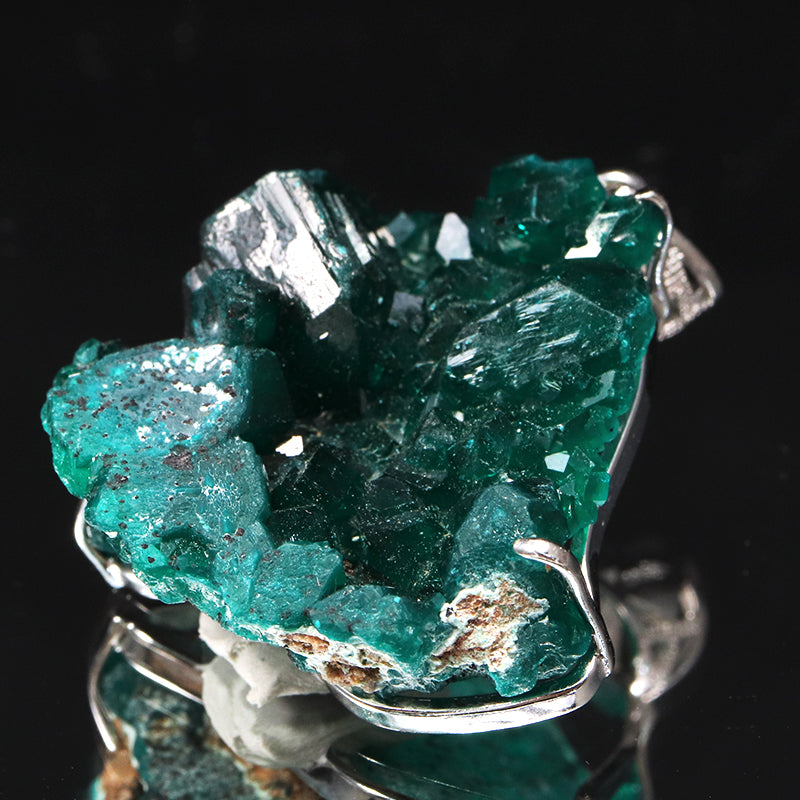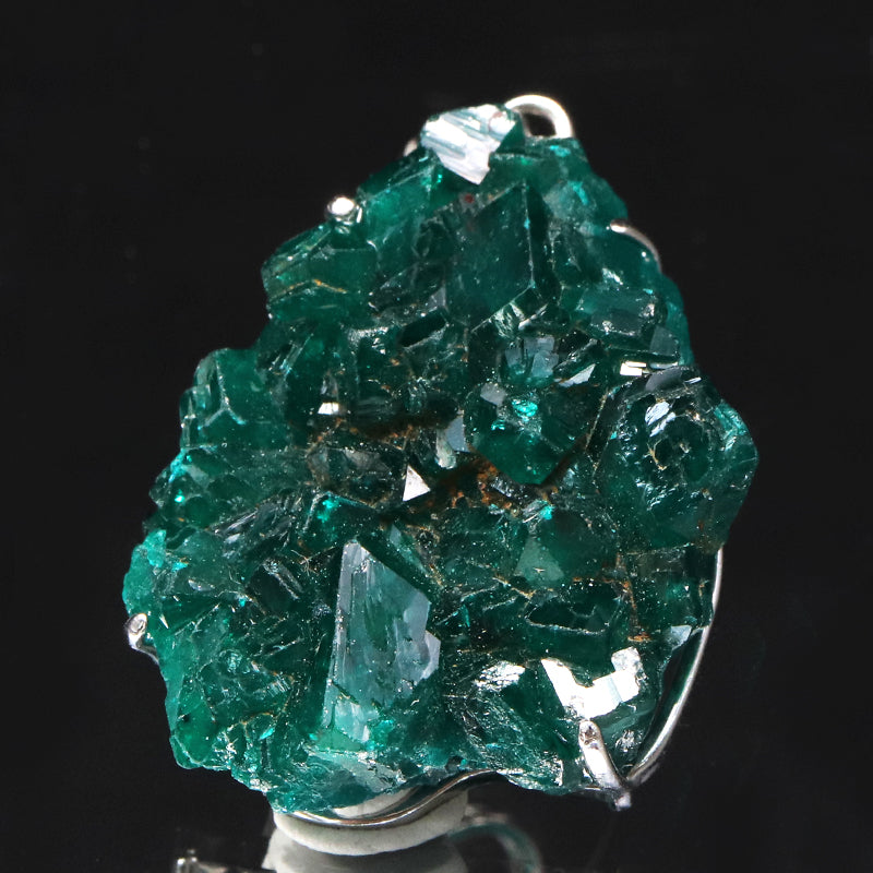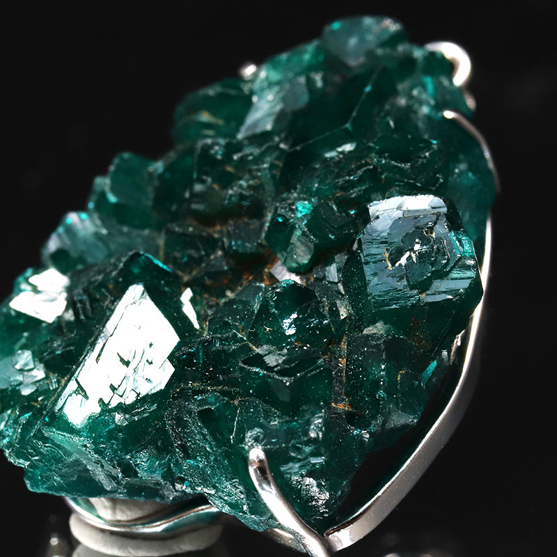 ダイオプテーズは、銅を主成分とするケイ酸塩鉱物で、エメラルドグリーンから深い翠色に近い鮮烈な緑色が最大の特徴です。
