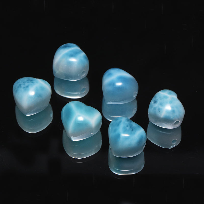 【1/19まで水瓶座星座石20%OFF(決済時に自動割引)】バラ石 ラリマー<ドミニカ産> ハート形 約10~11×約9.5mm 貫通穴 ランダム発送 [co-g1844]