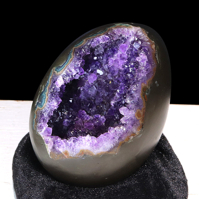 また、このジオードがエッグ型(たまご型)であることにも特別な意味があり、たまごは古くから「誕生」「可能性」「成長」「再生」を象徴する縁起の良い形とされています。