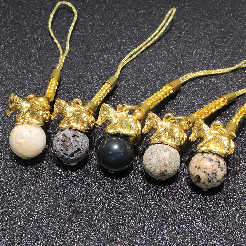 【日本銘石】ストラップ 干支ストラップ 馬(午) 丸約12mm 全5種 [co-g1872]