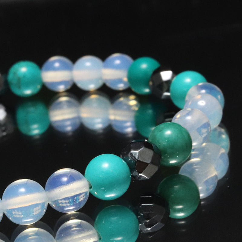 染ターコイズ×合成オパールを使ったデザインブレスレットになります。