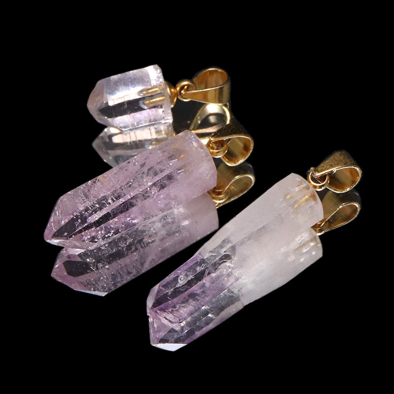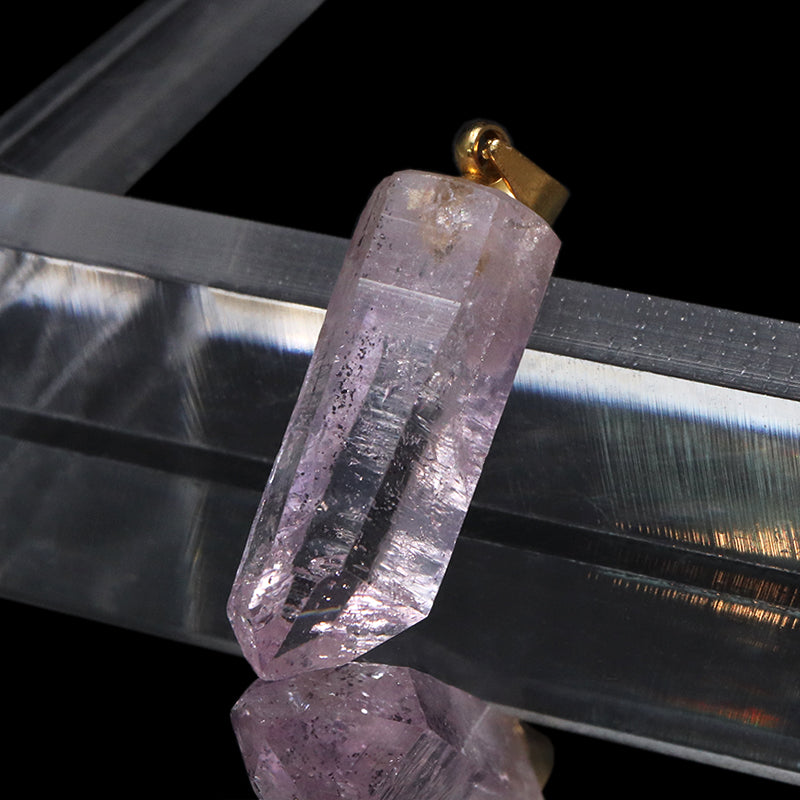 一般的なアメジストに比べて結晶が細長く繊細で、透明感の高い淡い紫色をしている点が大きな特徴です。