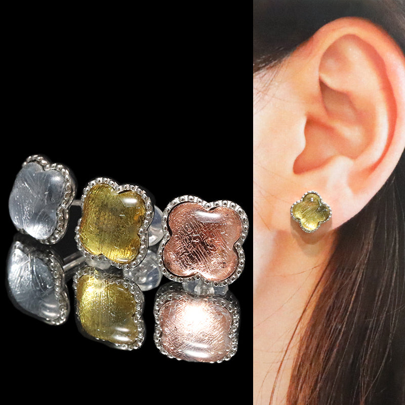 【割引不可】ピアス ギベオン<ナミビア産> クローバー 約10mm Silver925 [co-g1910]