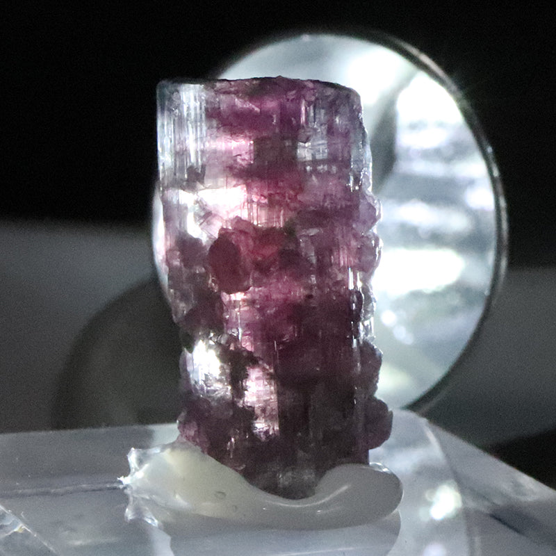 一つの結晶内で複数の色が自然に形成される点が最大の特徴で、トルマリン特有の多彩な発色と結晶成長の神秘性を強く感じさせます。