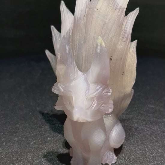 ぜひ動画で、九尾の狐の持つ神秘的な力と、瑪瑙の奥深い美しさを感じてください。