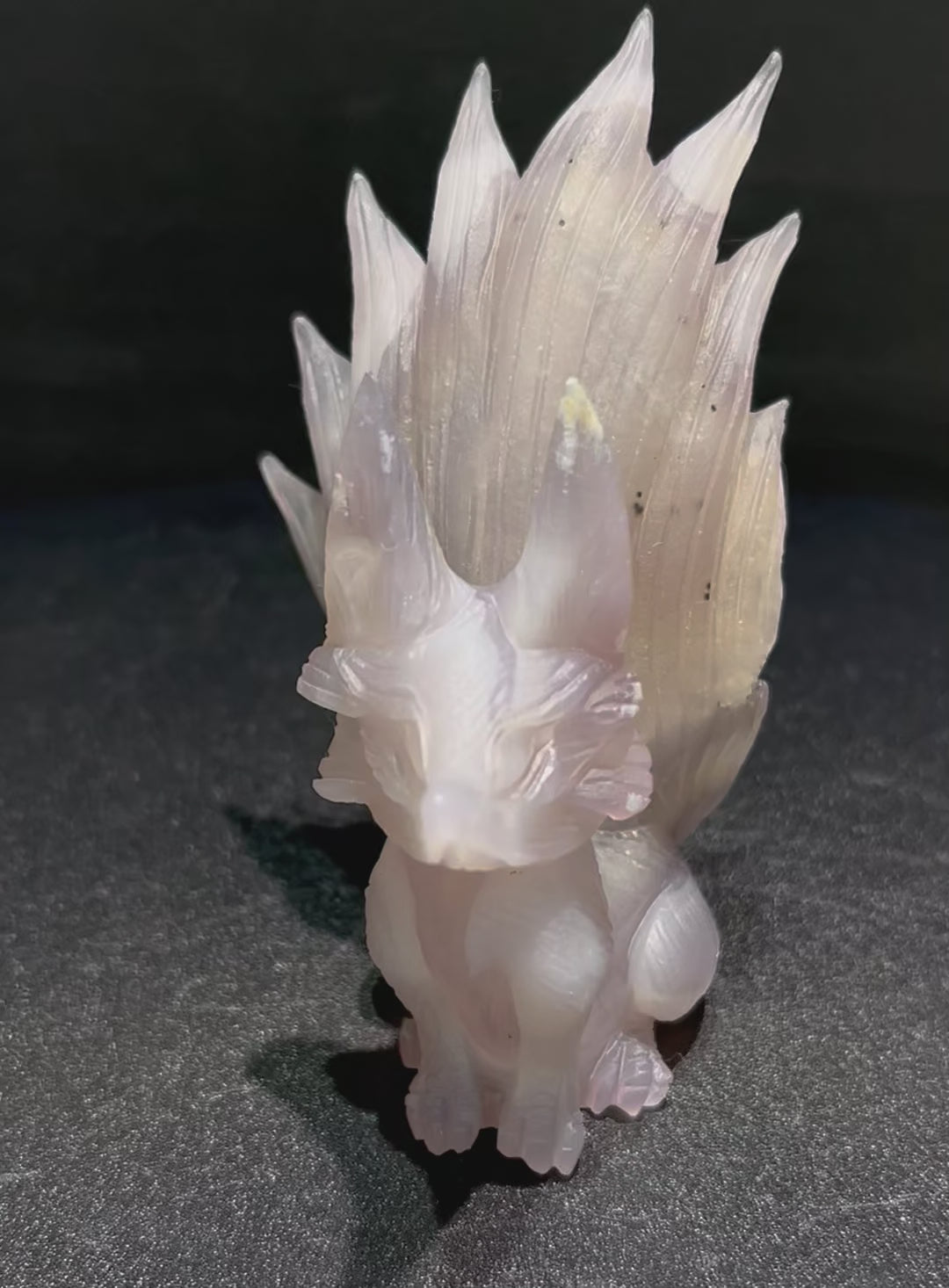 神秘と守護をもたらす、ブラジル産 瑪瑙 九尾の狐 彫り物
