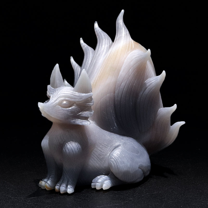 神秘と守護をもたらす、ブラジル産 瑪瑙 九尾の狐 彫り物