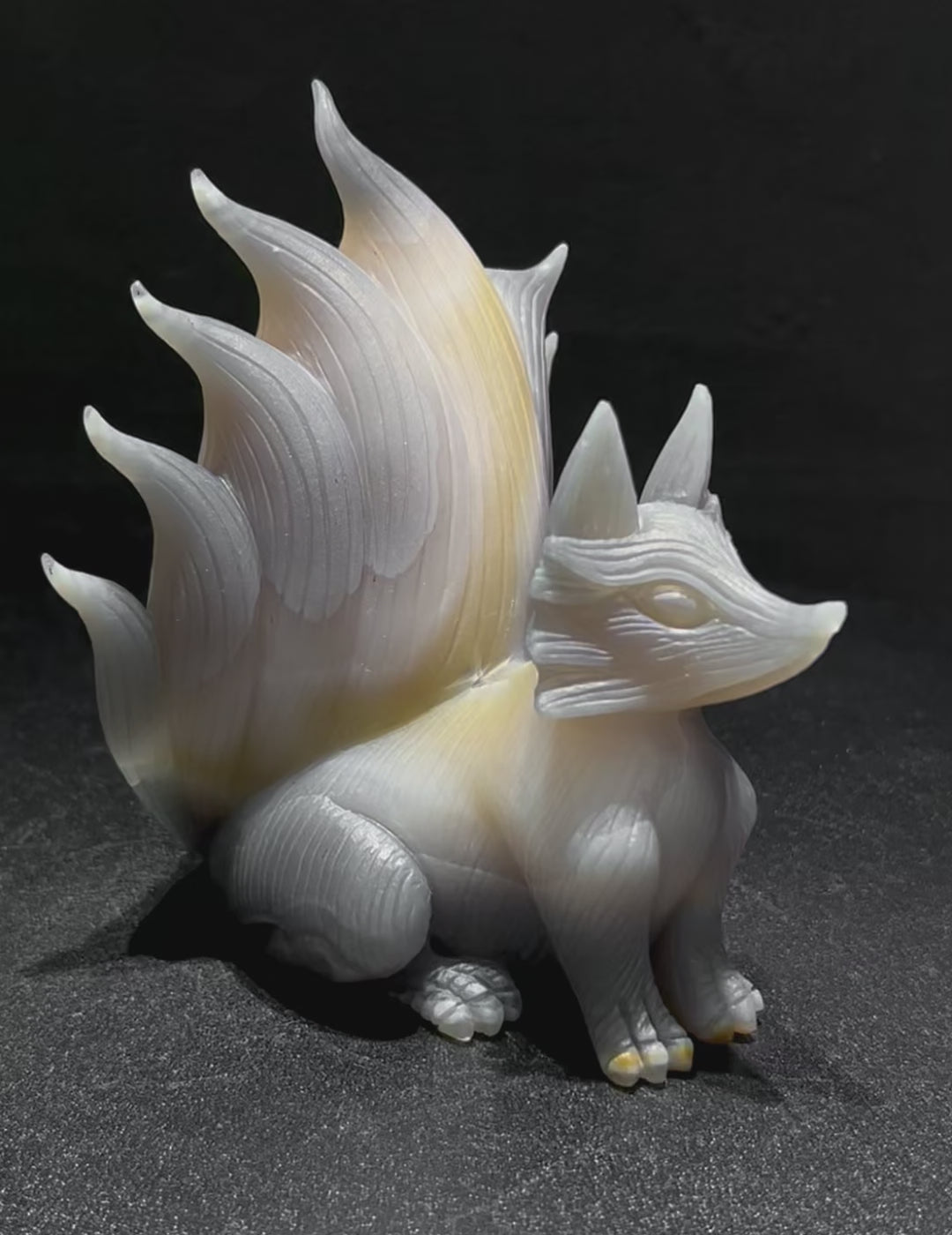 ぜひ動画で、九尾の狐の持つ神秘的な力と、瑪瑙の奥深い美しさを感じてください。