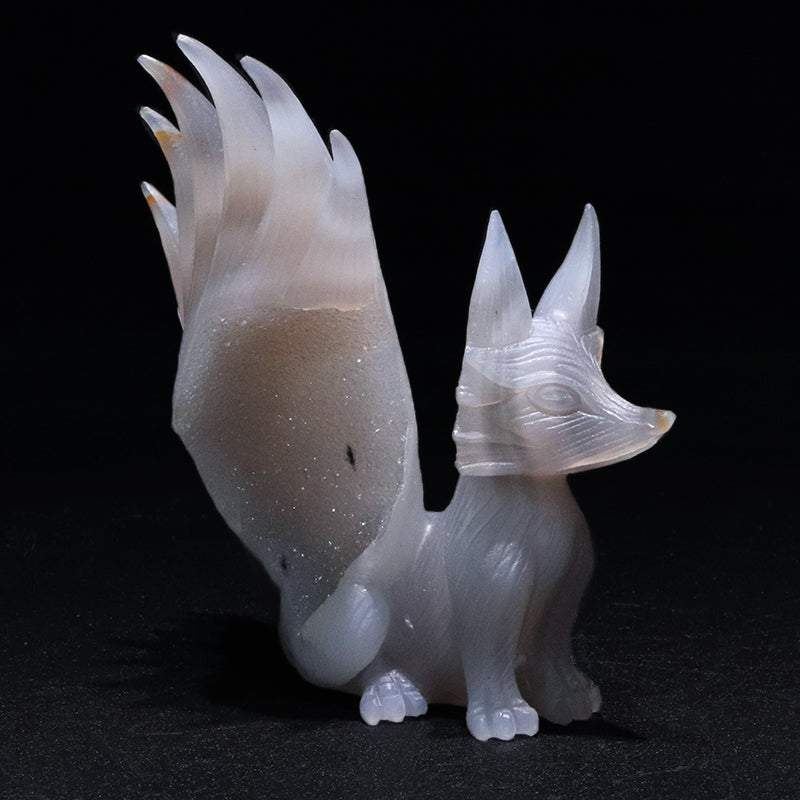 神秘と守護をもたらす、ブラジル産 瑪瑙 九尾の狐 彫り物