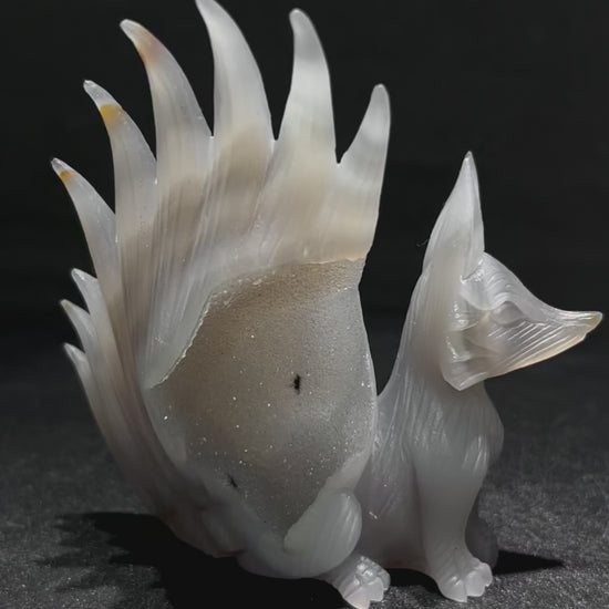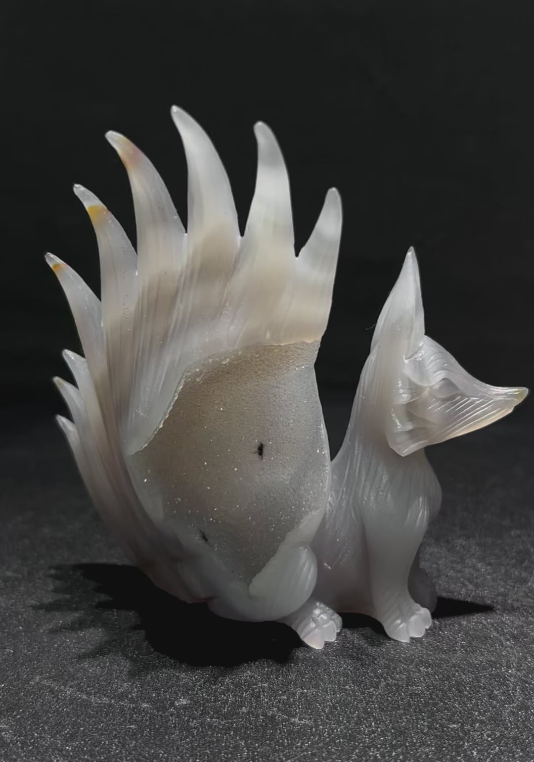 ぜひ動画で、九尾の狐の持つ神秘的な力と、瑪瑙の奥深い美しさを感じてください。