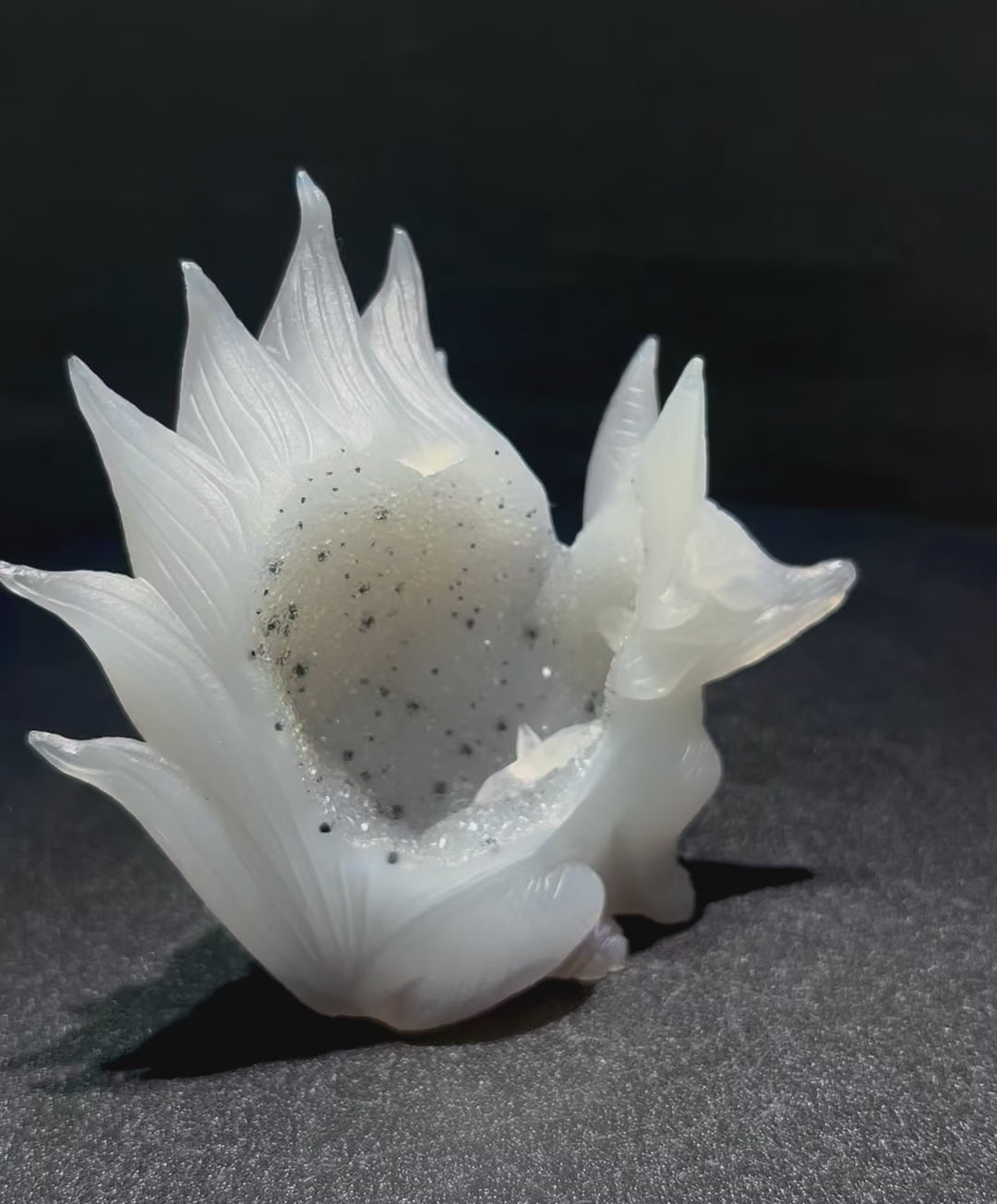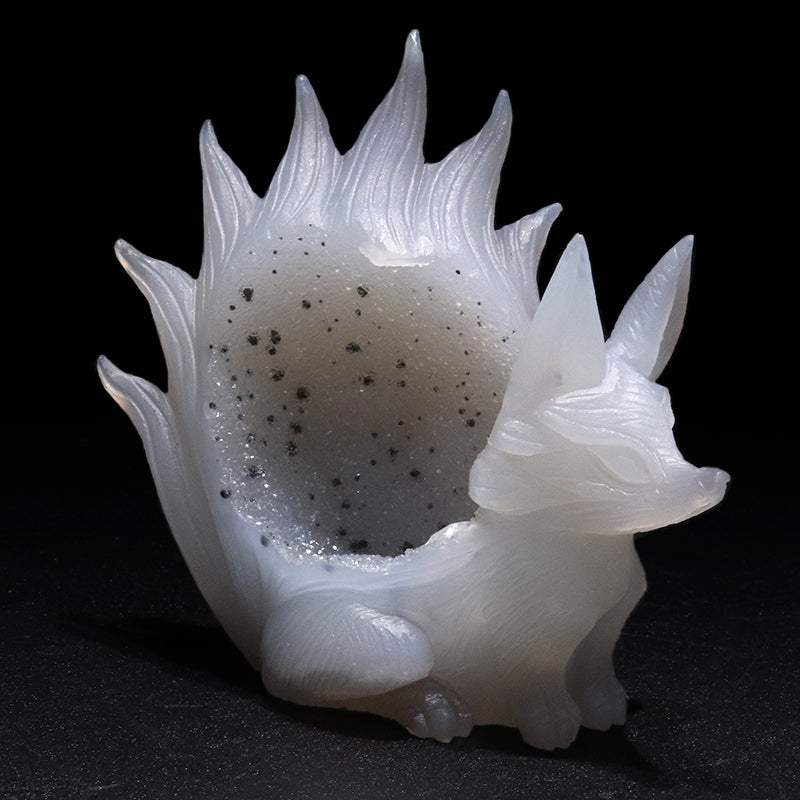 神秘と守護をもたらす、ブラジル産 瑪瑙 九尾の狐 彫り物