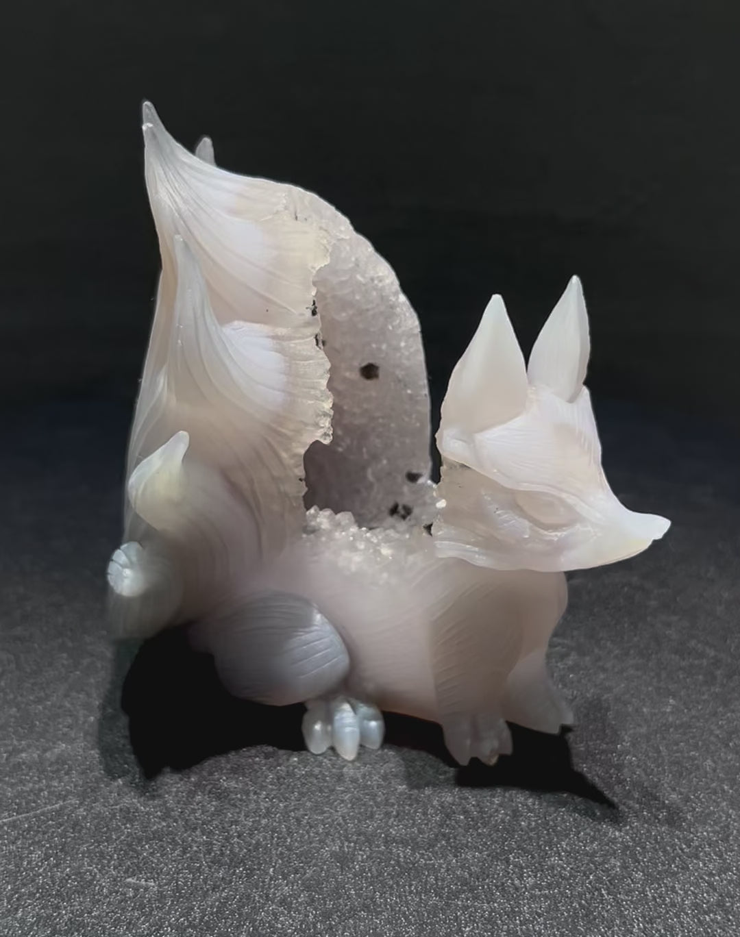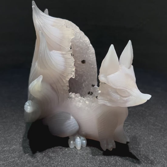 ぜひ動画で、九尾の狐の持つ神秘的な力と、瑪瑙の奥深い美しさを感じてください。