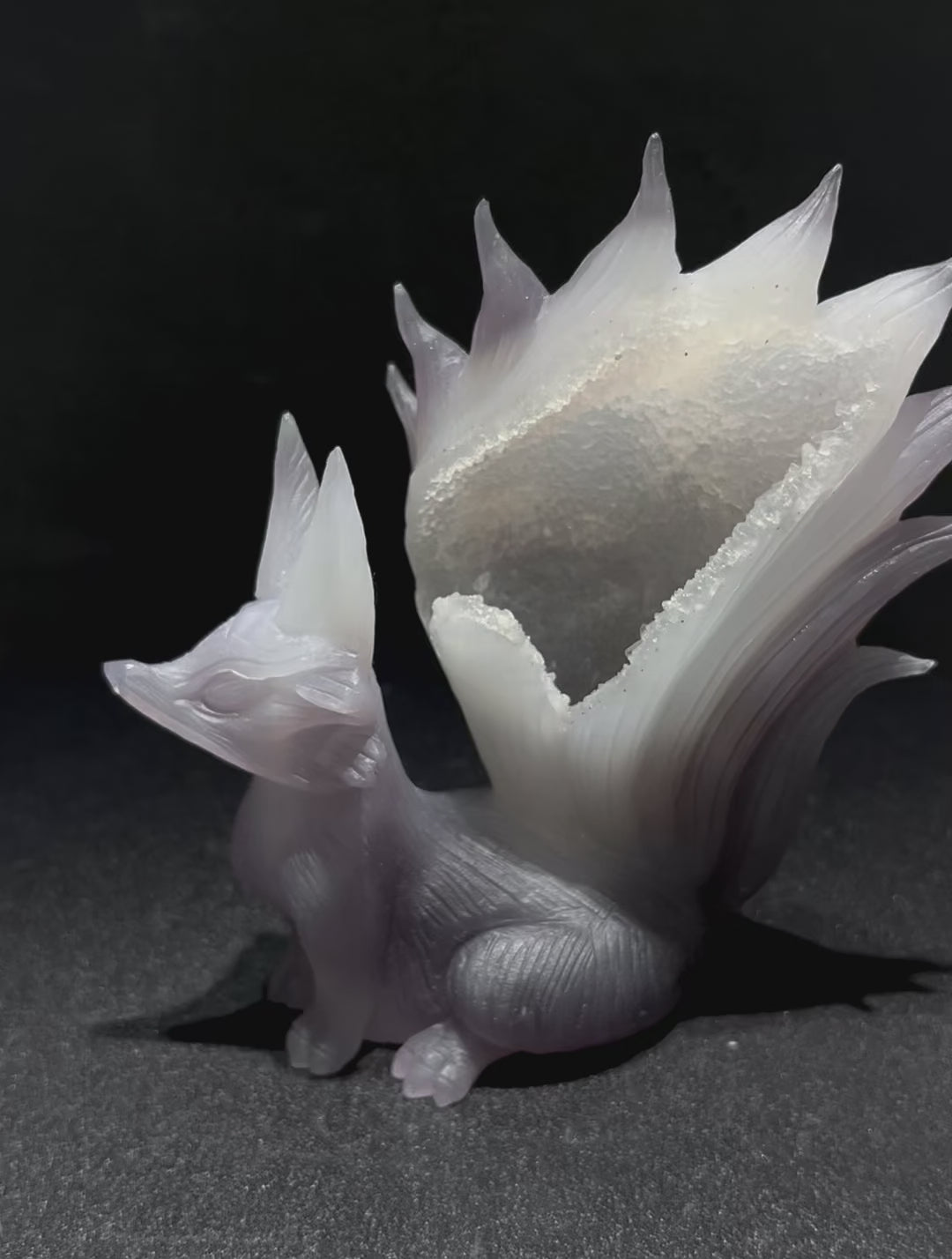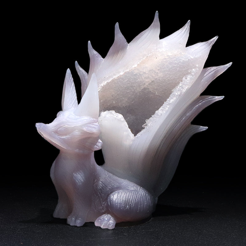 神秘と守護をもたらす、ブラジル産 瑪瑙 九尾の狐 彫り物