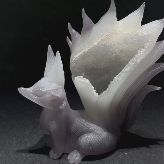 ぜひ動画で、九尾の狐の持つ神秘的な力と、瑪瑙の奥深い美しさを感じてください。