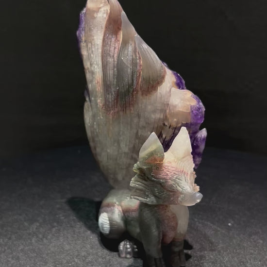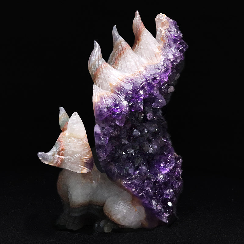 高貴な癒しと守護を宿す、ブラジル産 アメジスト 九尾の狐 彫り物