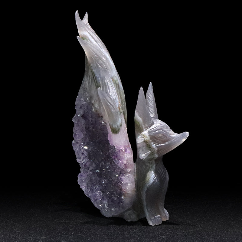 アメジスト特有の透明感と、九尾の狐の流麗な造形が調和し、空間に上品さと神秘の雰囲気をもたらします。