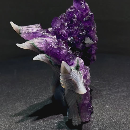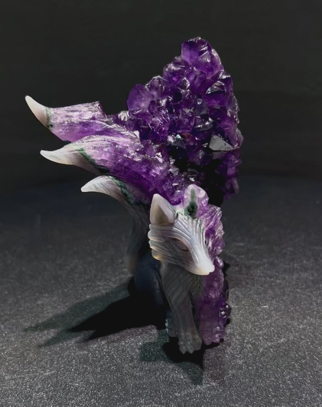 高貴な癒しと守護を宿す、ブラジル産 アメジスト 九尾の狐 彫り物
