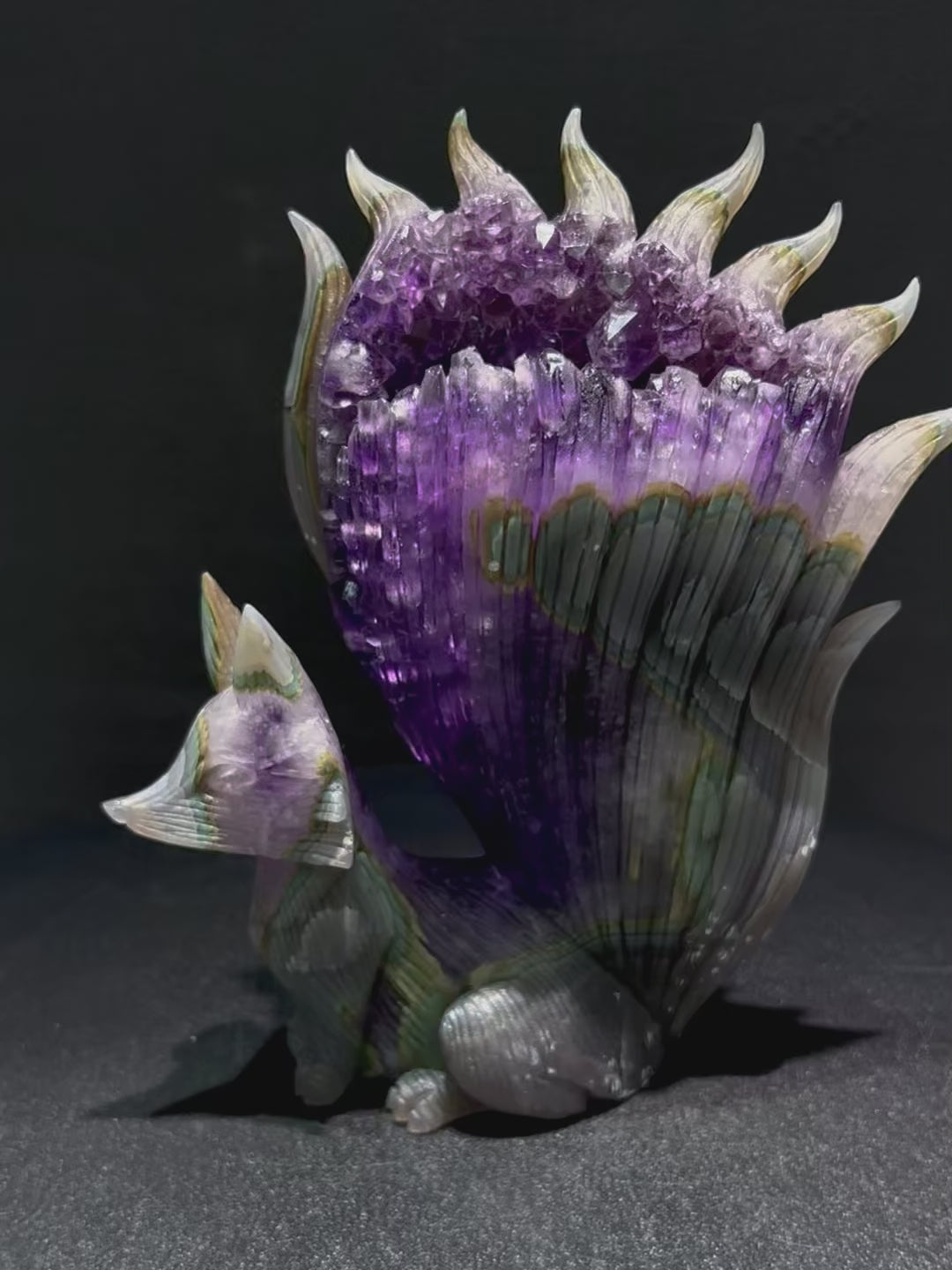 高貴な癒しと守護を宿す、ブラジル産 アメジスト 九尾の狐 彫り物