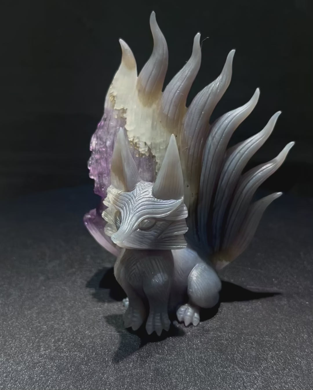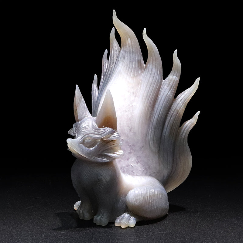 その貴重な原石から、伝説の神獣「九尾の狐」を精巧に彫り上げた、一点限りの特別な置物です。