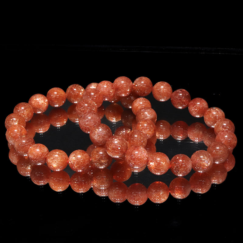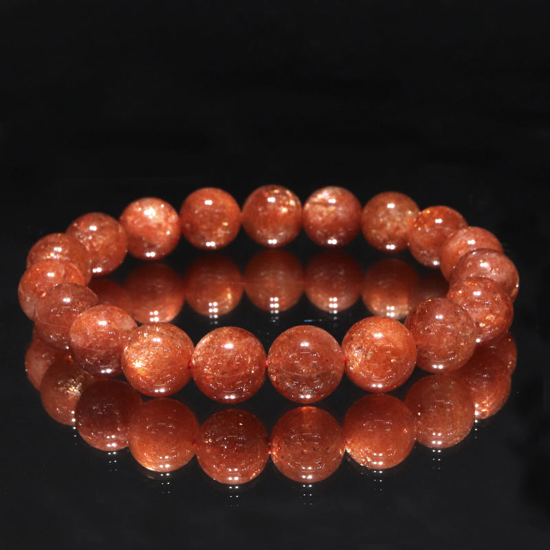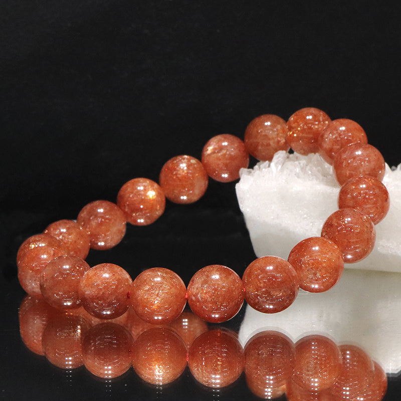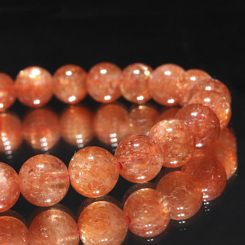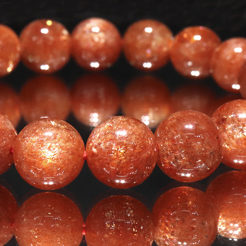 サンストーンは、長石グループに属する天然石で、内部に含まれるヘマタイトやゲーサイトなどの微細な鉱物が光を反射することで、キラキラとした輝きが現れる点が最大の特徴です。