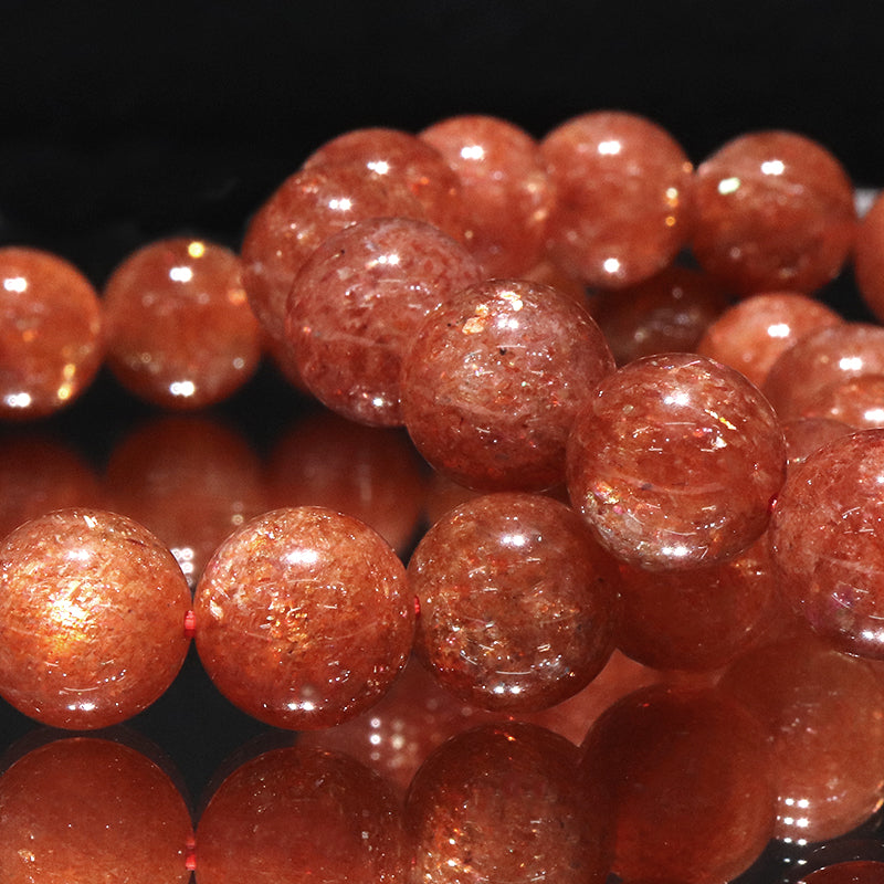 この輝きは「アベンチュレッセンス」と呼ばれ、石全体に温かみのあるオレンジや赤褐色の表情を与えます。