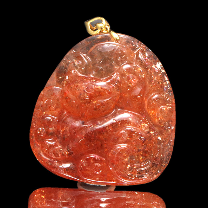 高貴な光を宿す、サンストーン九尾の狐ペンダントトップ