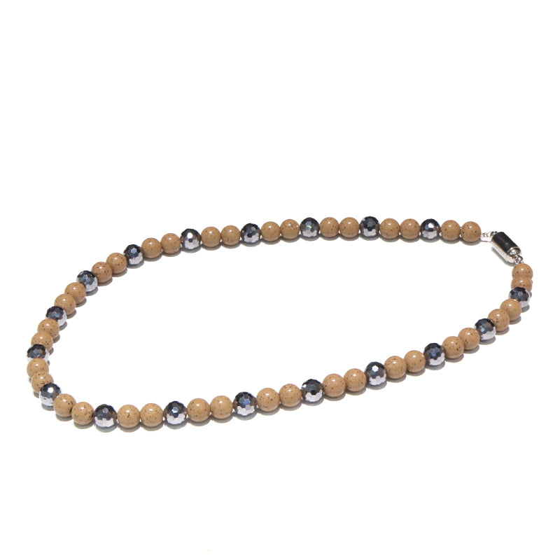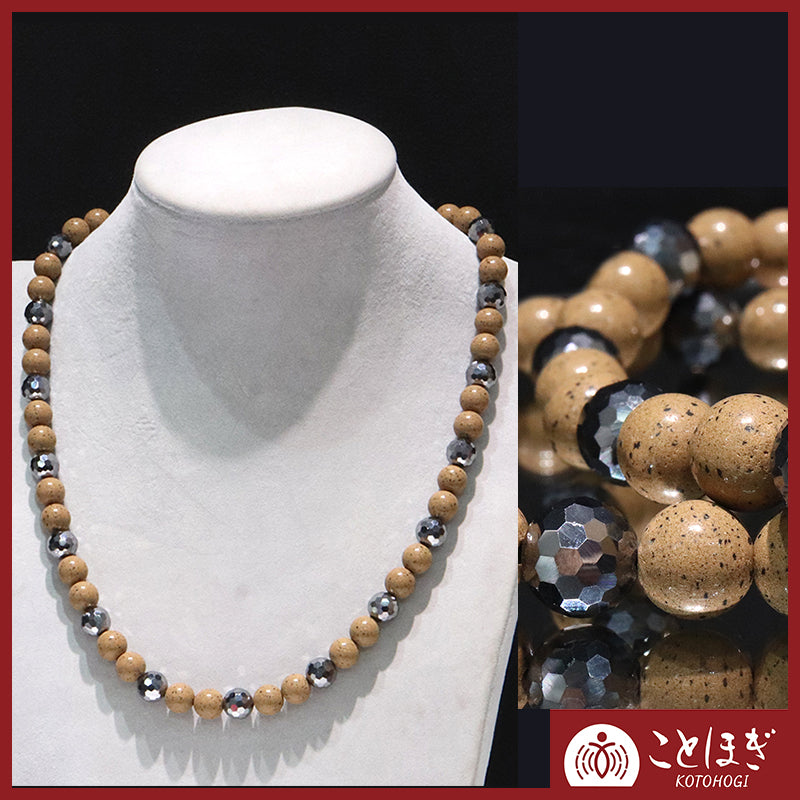 【ことほぎ】ネックレス 北投石黄灰色×テラヘルツミラー 丸8mm 約45cm [co-g2122]