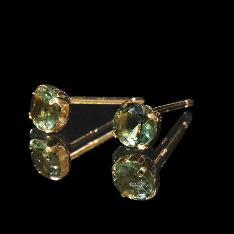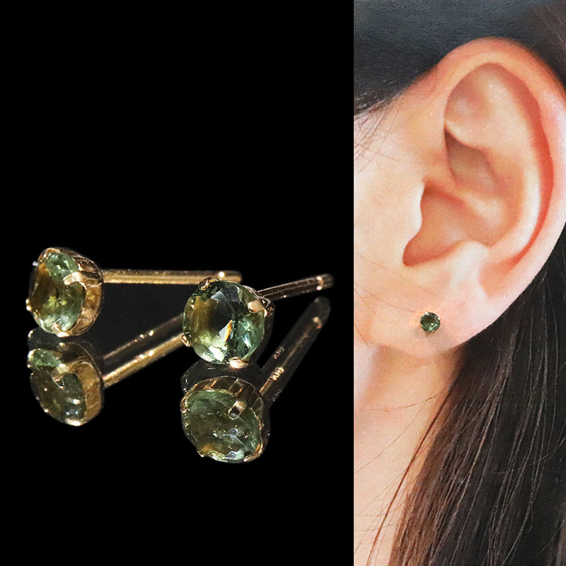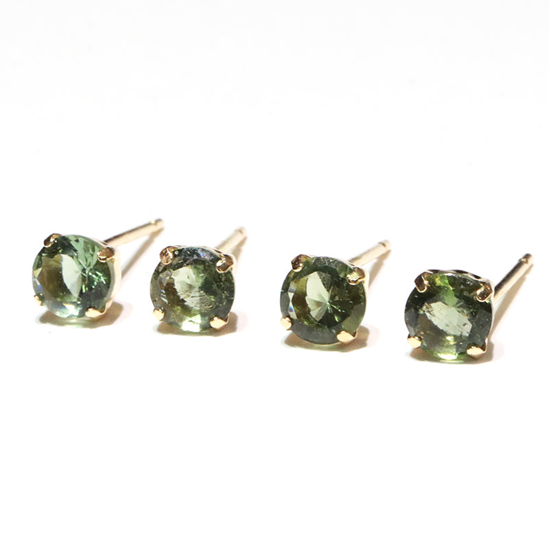 【現品限り】ピアス モルダバイト<チェコ産> 突き刺し型 約4mm K18 ゴールド [co-g2125]