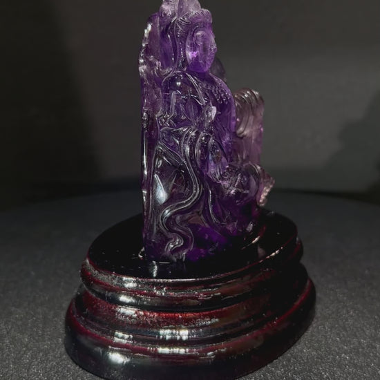 【割引不可】【動画】【一点物】彫り物 アメジスト<ブラジル産> 観音菩薩 台付き [co-g2154]