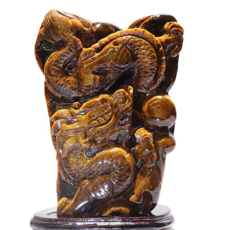 置物 タイガーアイ <アフリカ産> 龍 台付き 一点物 [cv-g0002]