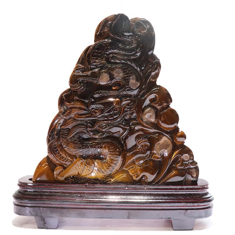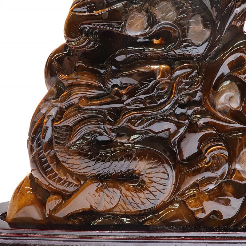 置物 タイガーアイ <アフリカ産> 龍 台付き 一点物 [cv-g0008]