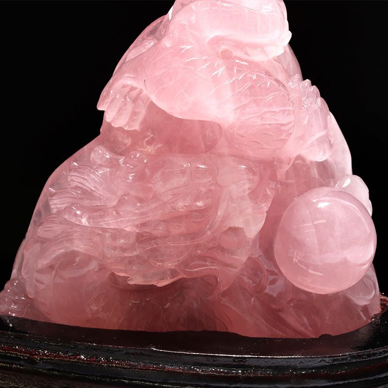 置物 ローズクォーツ <ブラジル産> 龍 台付き [cv-g0079]