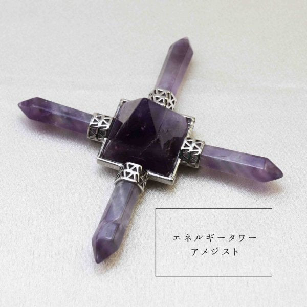 エネルギーを優しく蓄えアメジストのポイントがパワーを放出し、空間や体などに働きかけます。