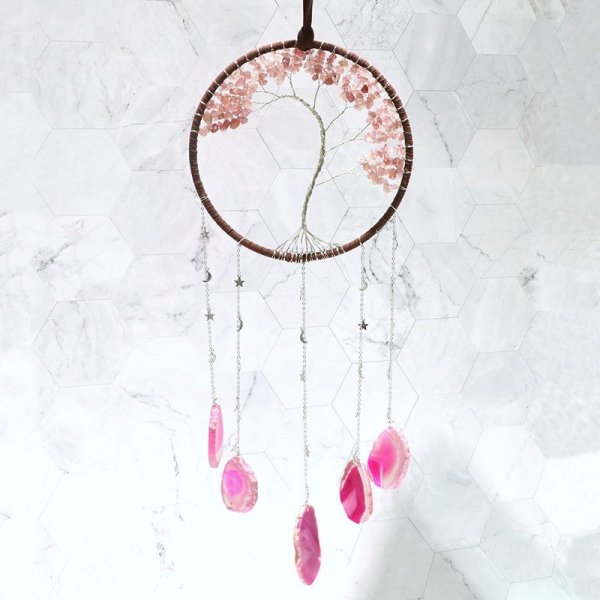 - ドリームキャッチャー、 ストロベリークォーツ、 ブルーレースアゲート、 ローズクォーツ