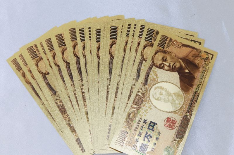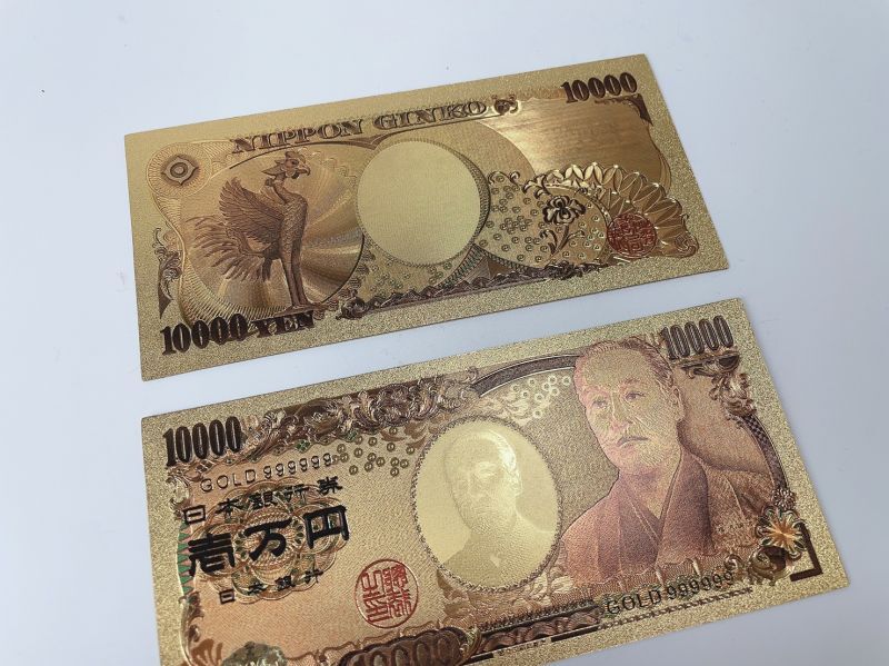金色に輝く1万円札で、ナンバーは「GOLD999999」です。