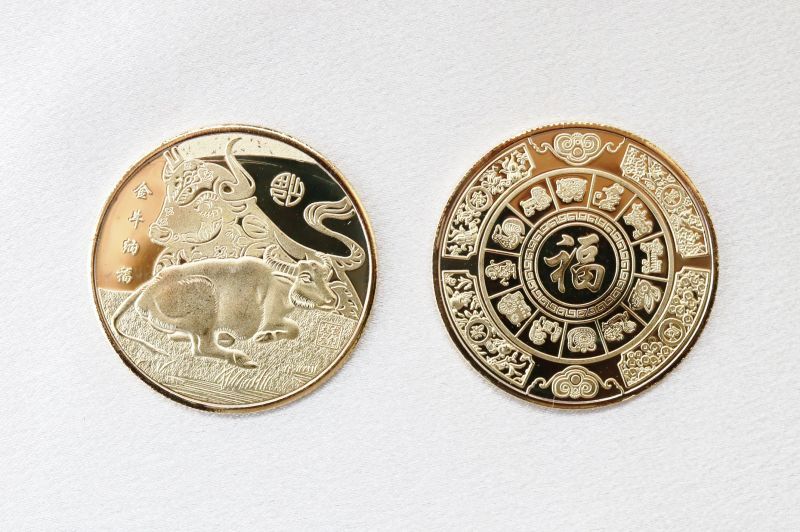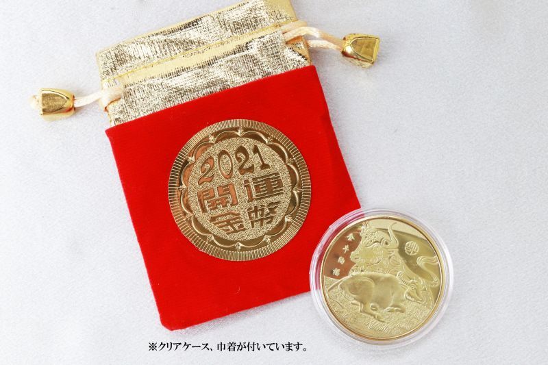 令和3年 縁起メダル 金牛納福 円型 [in-g4030]
