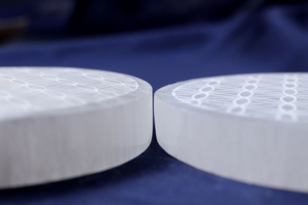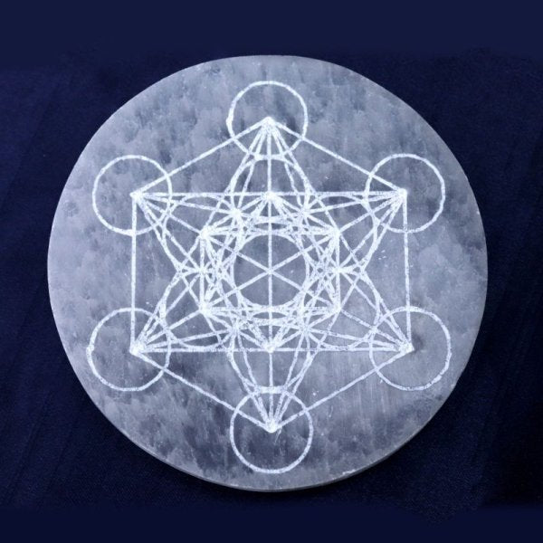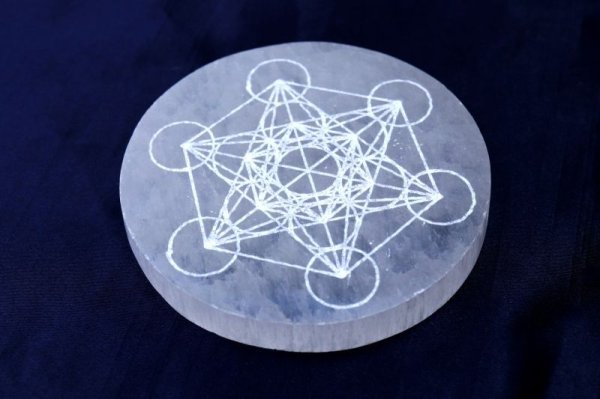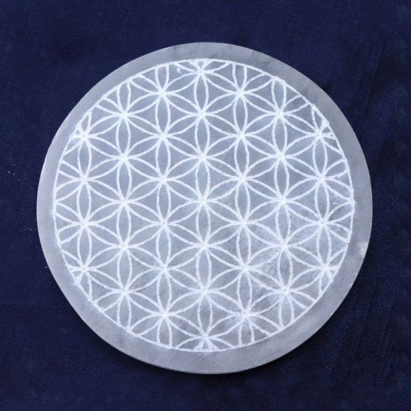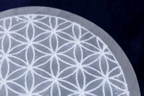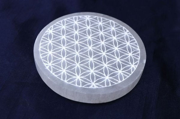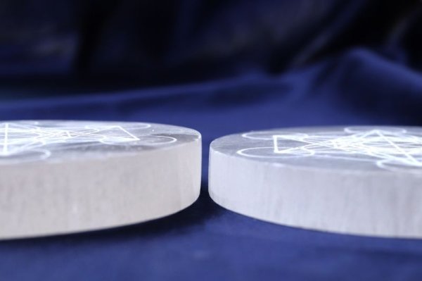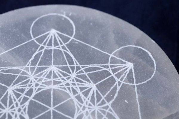 の柄が彫られたセレナイトの置物です。