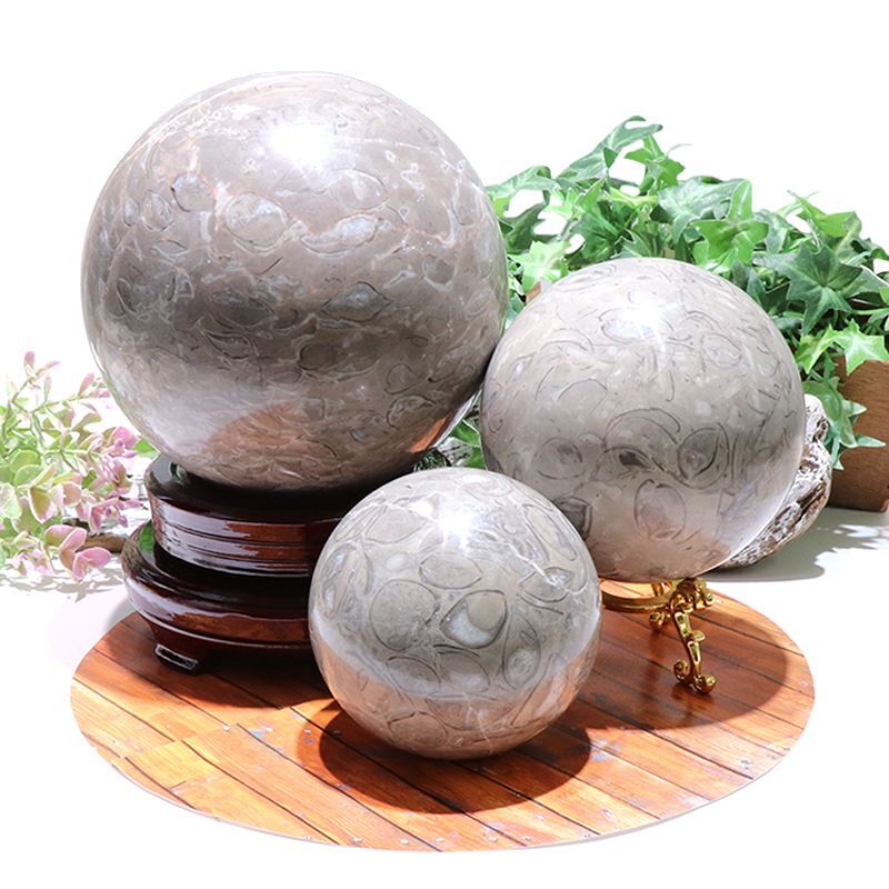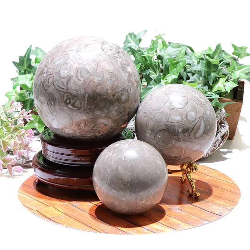 【割引不可】置物 丸玉 フォシルクリノイド <中国産> ウミユリの化石 [po-g3008]