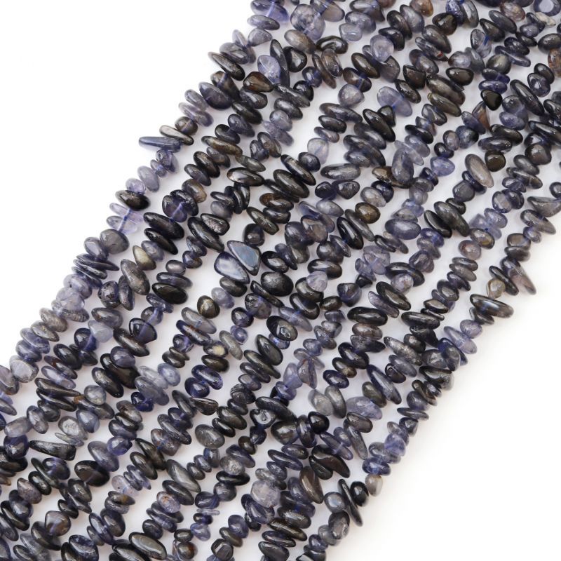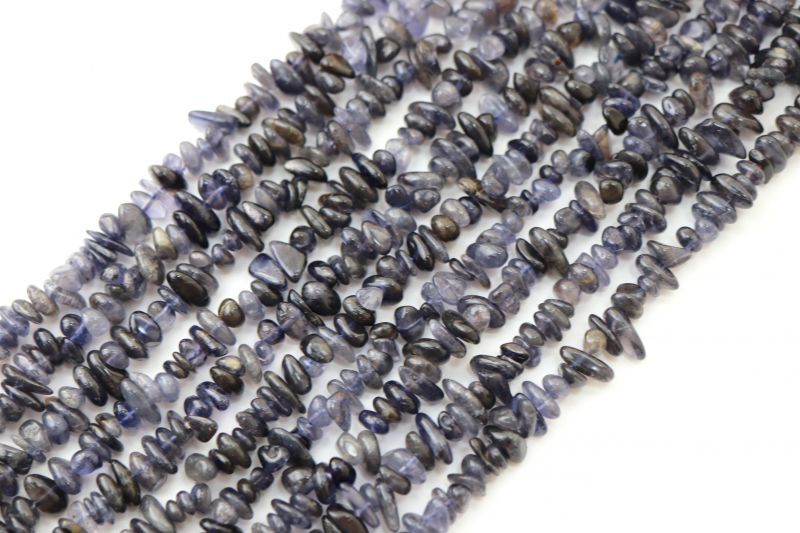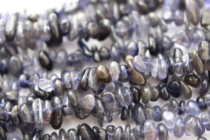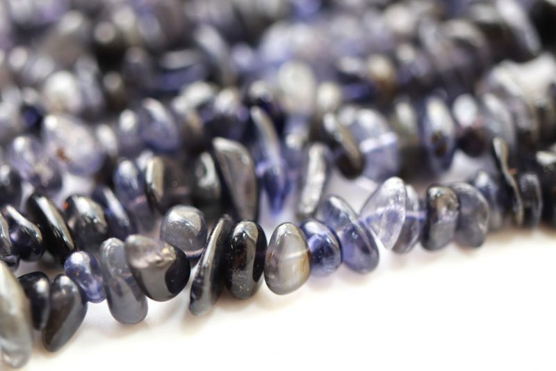 不定形のアイオライトの連です。アクセサリーなどに人気です。