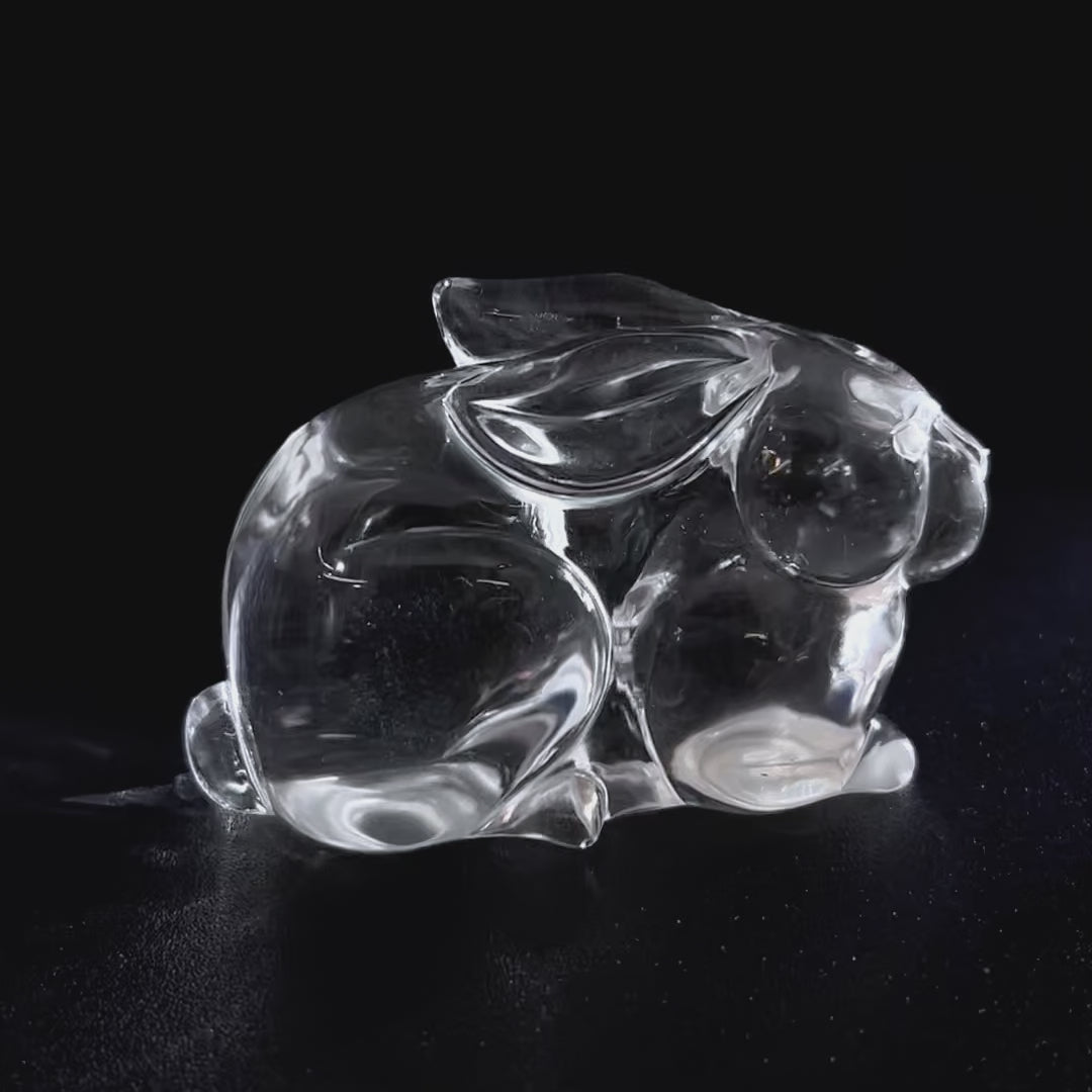 澄みきった水晶の透明な輝きと、兎のやさしく愛らしい姿が美しく調和し、眺めるほどに癒しと気品、そしてやわらかな存在感を感じさせます。