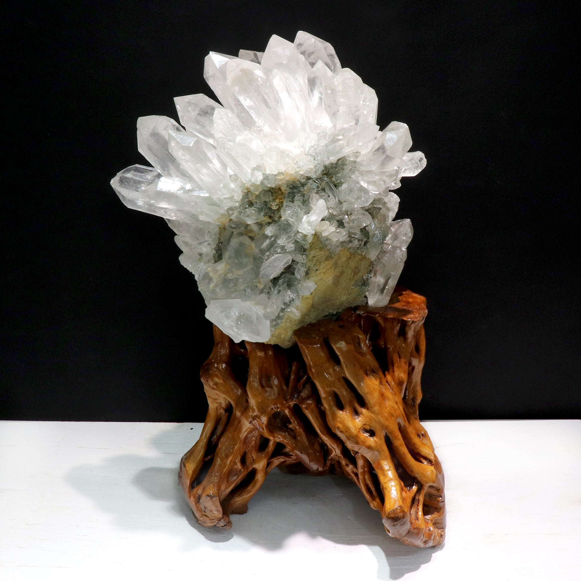この産地の水晶は、澄んだ透明感に加えて、緑色系のクロライトを含んだものや、結晶の表情が美しいものが見られることで知られており、産地名そのものが価値訴求につながりやすい点も魅力です。